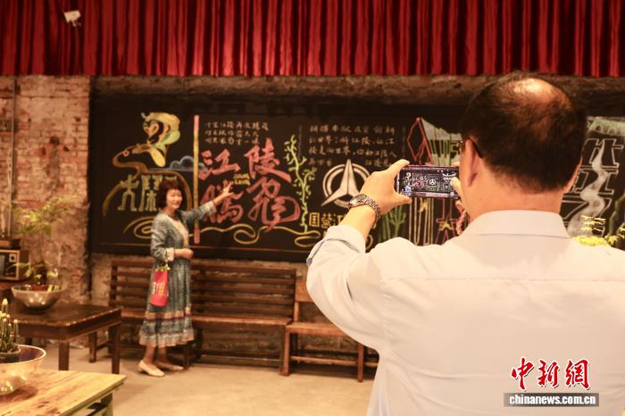 图为念旧气概的乌板报前,市平易近举起脚机摄影。 谭超仄 摄